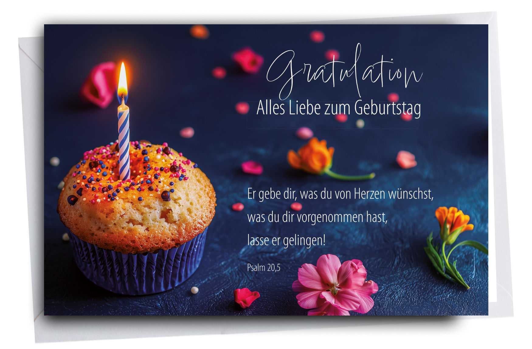 Jetzt die Faltkarte Geburtstag Muffin bestellen und Freude, Ermutigung und Segen weiterschenken.