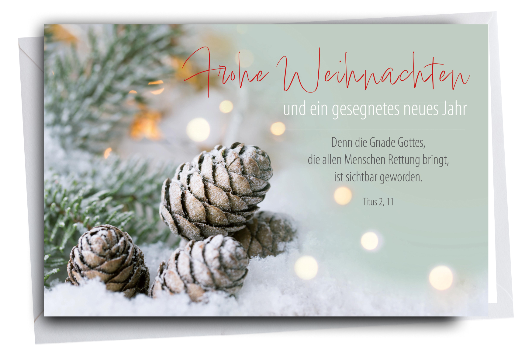 Jetzt die Faltkarte Weihnachten Tannenzapfen bestellen und Freude, Licht und Gottes Segen verschenken.
