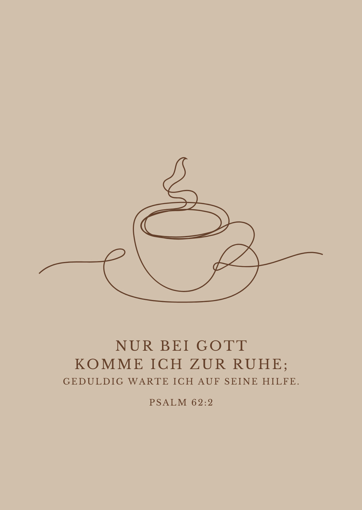 Die christliche Postkarte Kaffee aus der beliebten Serie One-Line-Cards zeigt ein minimalistisches und zugleich warmes Design mit einem ermutigenden Bibelvers. Das Motiv stellt in feiner One-Line-Art eine Tasse Kaffee dar, aus der sanft der Dampf aufsteigt, und es symbolisiert Ruhe, Geborgenheit und die kostbaren Momente der Stille mit Gott.