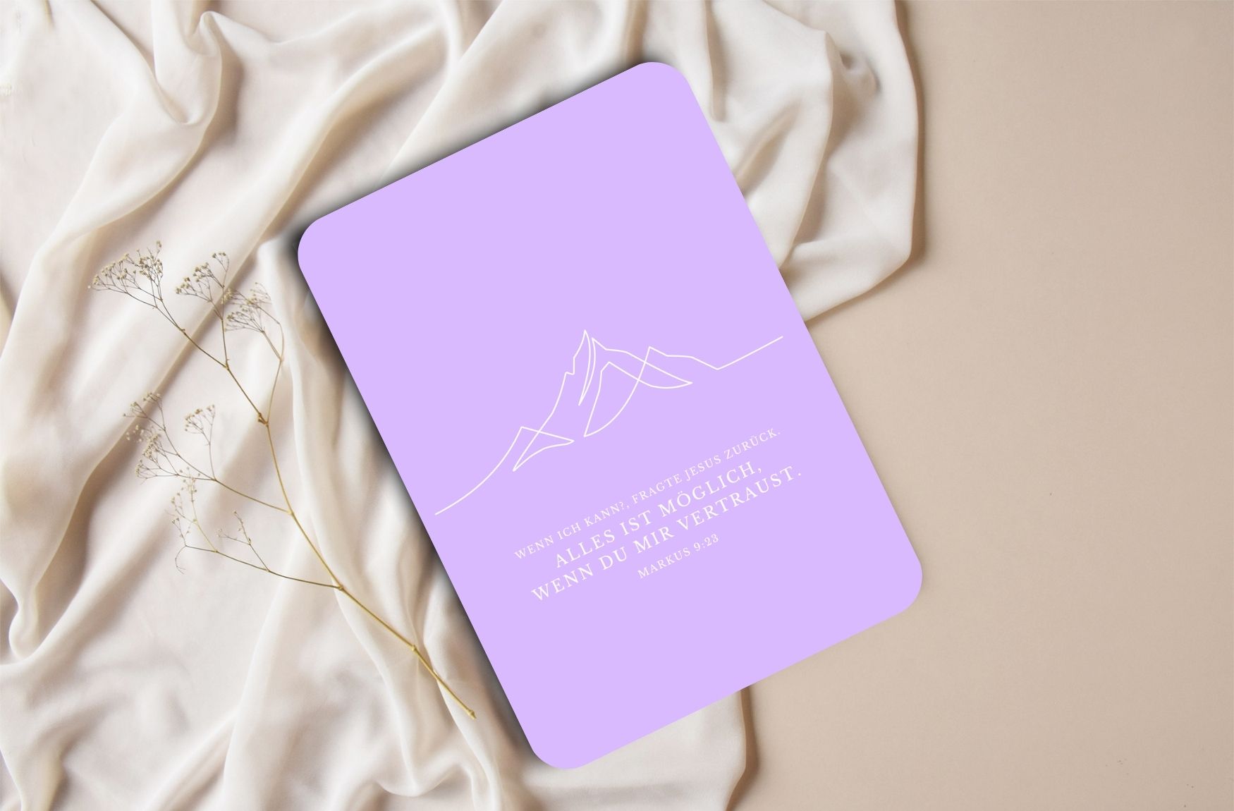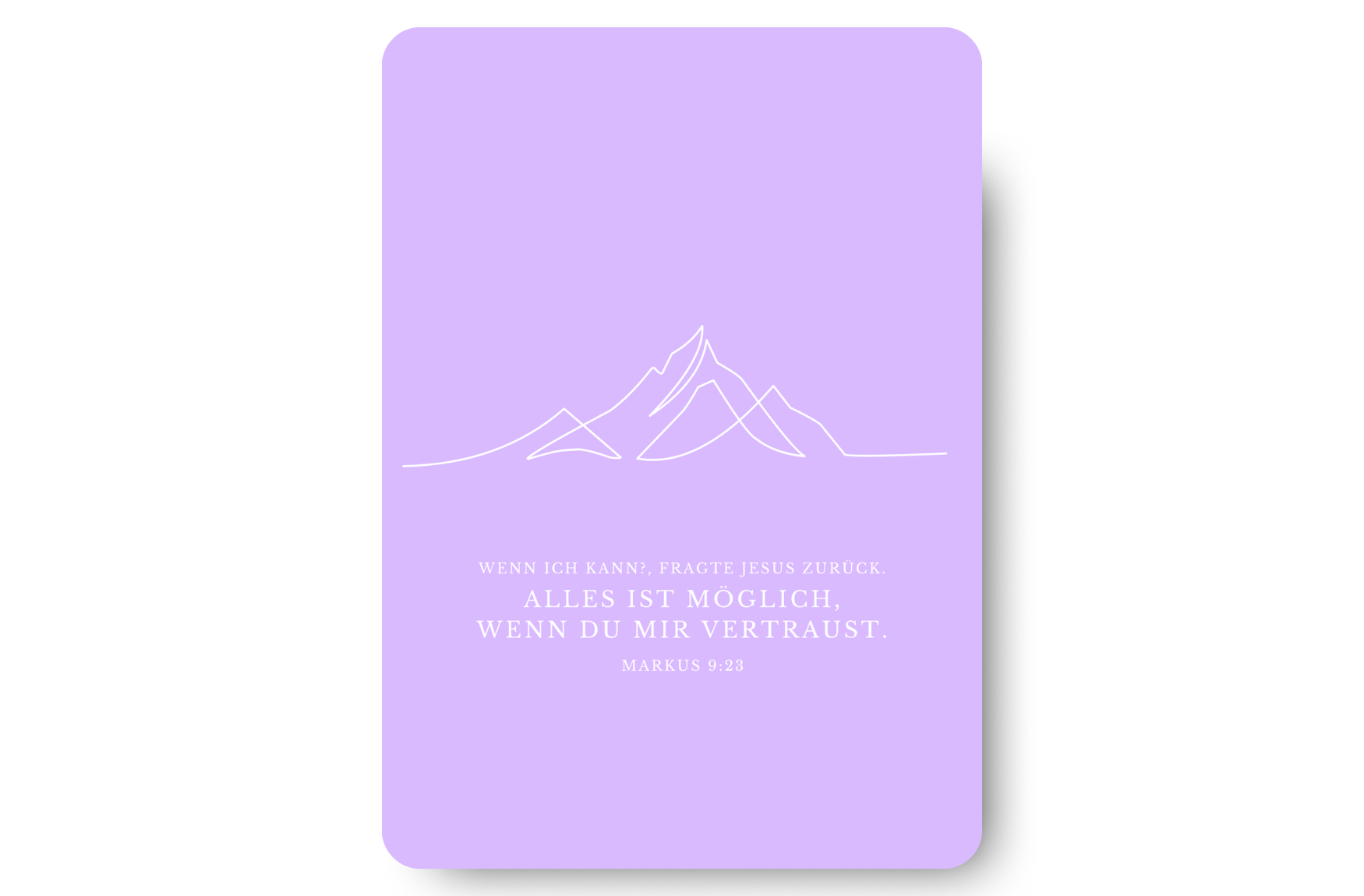 Das Design in sanftem Flieder wirkt modern und ruhig, während es gleichzeitig eine motivierende sowie aufbauende Wirkung entfaltet. Die hochwertige Postkarte Mountain eignet sich daher ideal als Ermutigungskarte und auch für die Seelsorge, ebenso wie als kleines Geschenk oder als christlicher Impuls, der täglich Kraft und Zuversicht schenkt.