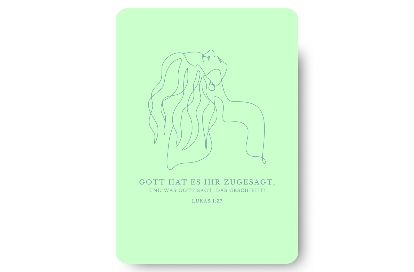 Das Design in Mintgrün wirkt modern und ruhig, während es gleichzeitig inspirierend ist und eine warme Ausstrahlung hat. Die hochwertige Postkarte eignet sich daher wunderbar als Ermutigungskarte, aber auch für die Seelsorge, sowie als kleines Geschenk oder sogar als christlicher Impuls, der jeden Tag neu motivieren kann.